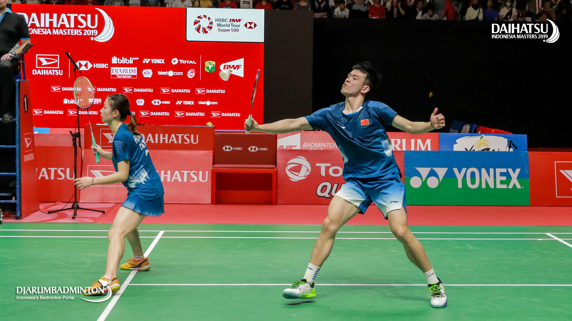 ZHENG Siwei/HUANG Yaqiong (Tiongkok) mengembalikan serangan
