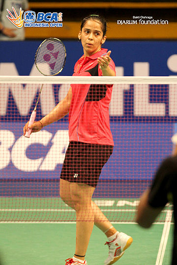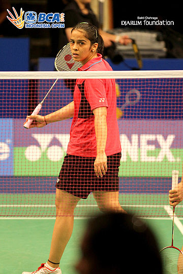 Saina Nehwal (India) terlihat serius saat memulai latihan