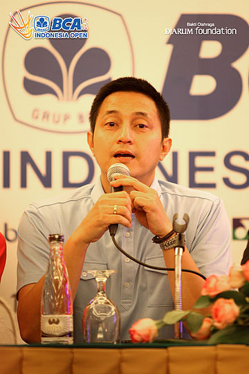 Simon Santoso (Indonesia) saat konfrensi pers di Hotel Sultan