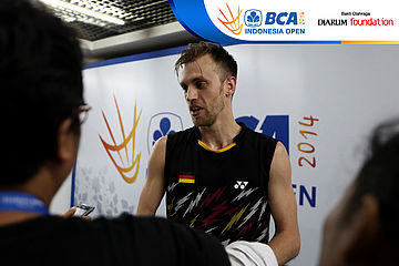 Marc Zwiebler (Jerman) saat diwawancarai media seusai bertanding