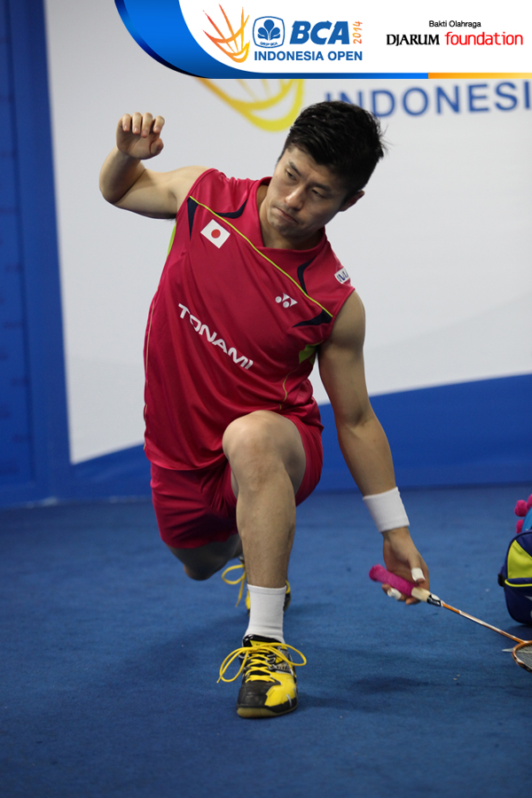 Sho Sasaki (Jepang) melakukan pemanasan sebelum bertanding