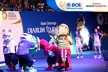 Para maskot dan dancer memeriahkan BCA Indonesia Open Super Series Premier 2014
