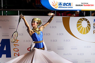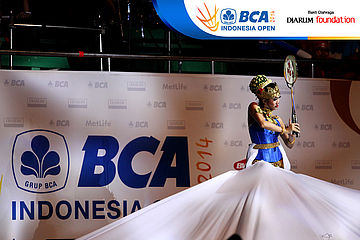 Penampilan seorang penari pada gelaran BCA Indonesia Open Super Series Premier 2014