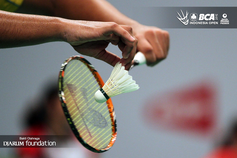 Lindaweni Fanetri (Indonesia) bersiap melepaskan serangan ke arah Gregoria Mariska (Indonesia).