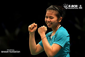 Selebrasi Greysia Polii (Indonesia).