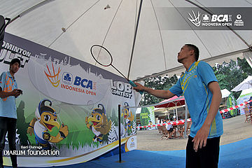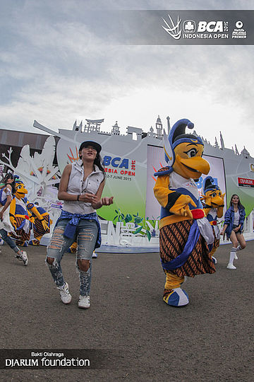 Aksi para dancer dan maskot BIO ikut memeriahkan gelaran BCA Indonesia Open Super Series Premier 2015.