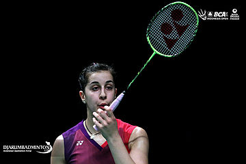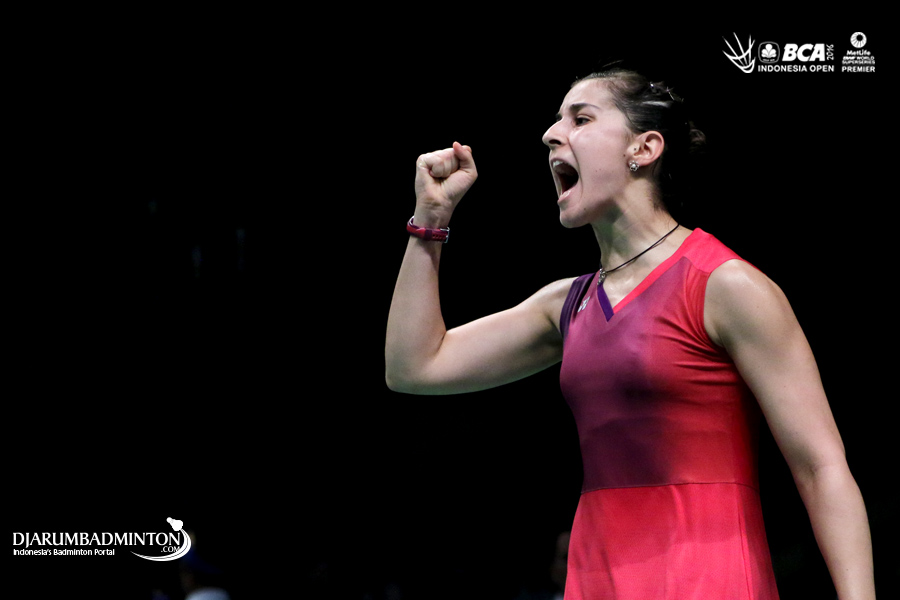 Carolina Marin (Spanyol) meniup raketnya