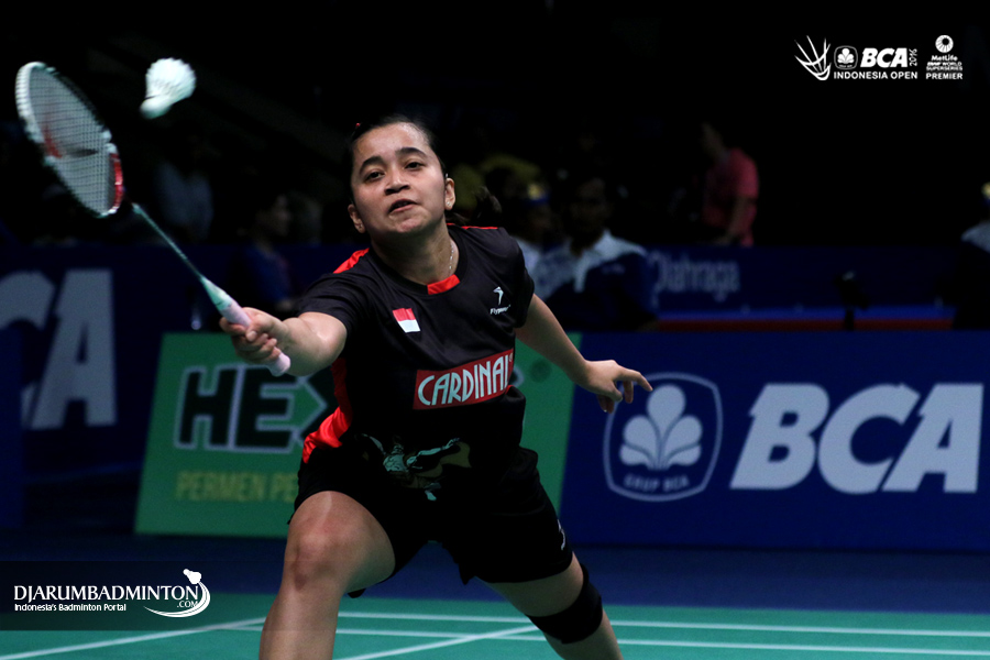 Hera Desiana (Indonesia) mengembalikan shuttlecock