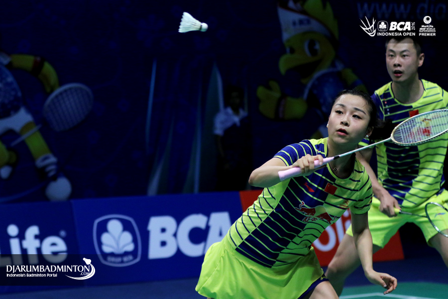 Xu chen/Ma Jin (Tiongkok) menghadang serangan