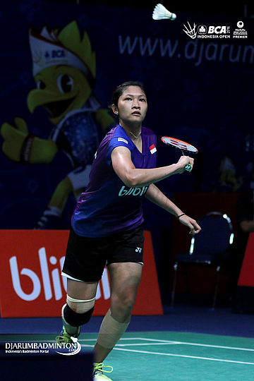 Lindaweni Fanetri (Indonesia) bersiap menghadang serangan