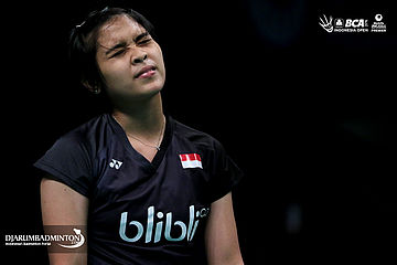Ekspresi kekecewaan Gregoria Mariska (Indonesia)
