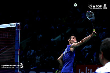 Lee Chong Wei (Malaysia) mengembalikan shuttlecock