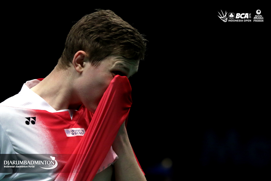 Ekspresi kekecewaan Viktor Axelsen (Denmark)