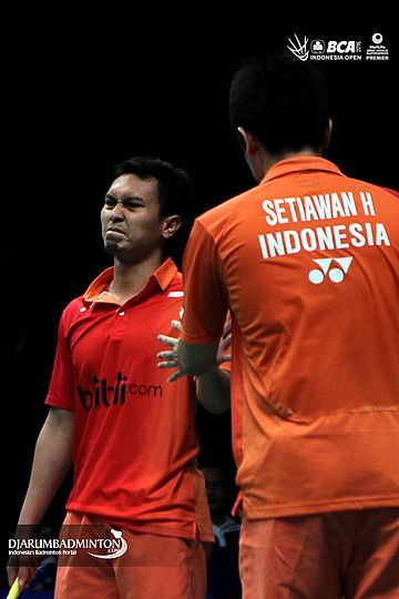 Ekspresi kekecewaan Hendra Setiawan/Mohammad Ahsan (Indonesia)