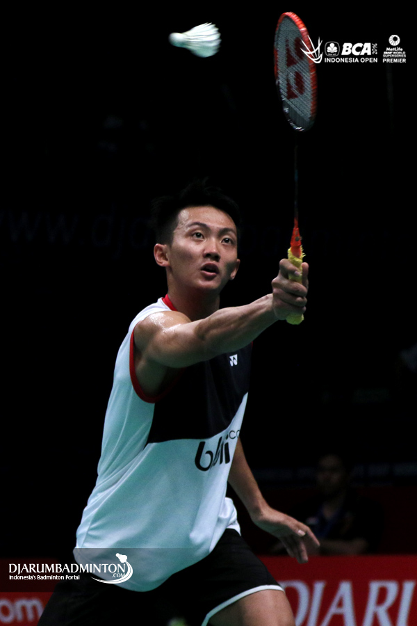 Ihsan Maulana Mustofa (Indonesia) mengembalikan shuttlecock