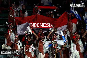 Supporter fanatik bulutangkis memberikan dukungan kepada para atlet Indonesia