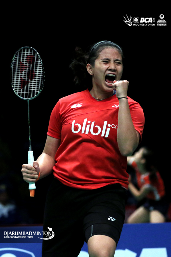Alfian Eko Prasetya/Annisa Saufika (Indonesia) menyambut pengembalian
