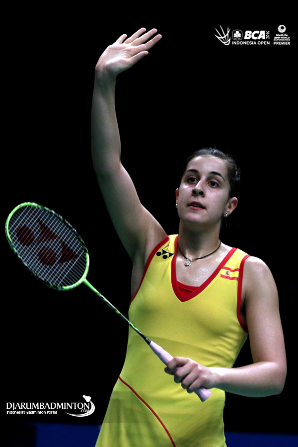 Carolina Marin (Spanyol) mengembalikan shuttlecock