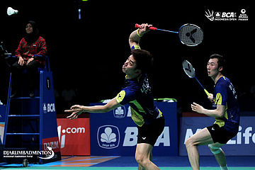Lee Yong Dae/Yoo Yeong Seong (Korea) bersiap menyambut pengembalian