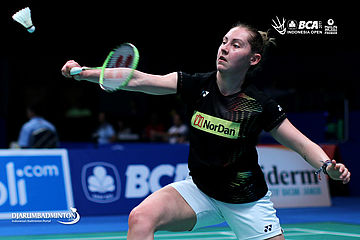 Kirsty Gilmour (Skotlandia) mengembalikan shuttlecock
