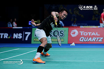 Sony Dwi Kuncoro (Indonesia) bersiap menghadang serangan