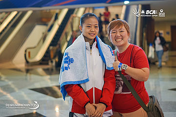 Fitriani (Indonesia) dan Cheung Ngan Yi (Hong Kong) saat jeda istirahat