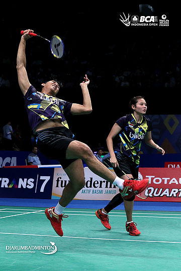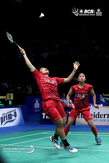 Alfian Eko Prasetya/Annisa Saufika (Indonesia) melepaskan serangan