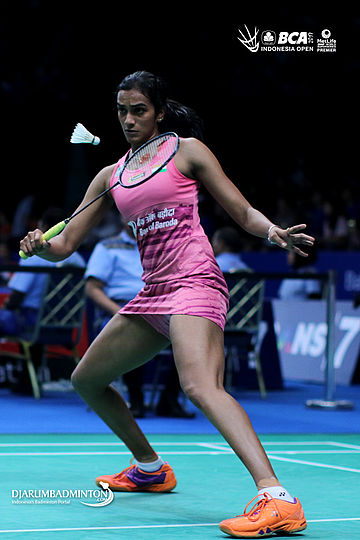 Pusarla V. Sindhu (India) menghadang serangan