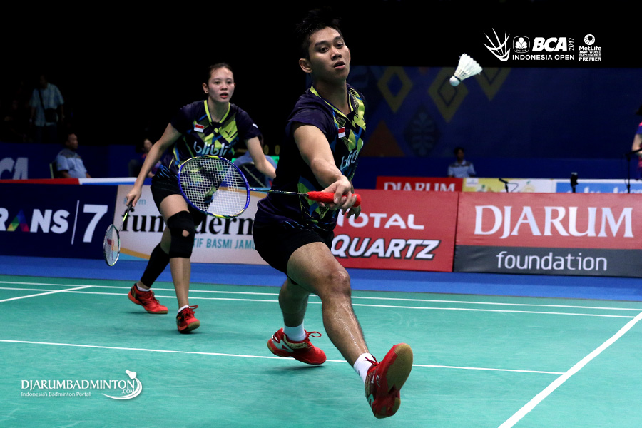 Alfian Eko Prasetya/Annisa Saufika (Indonesia) menyambut pengembalian