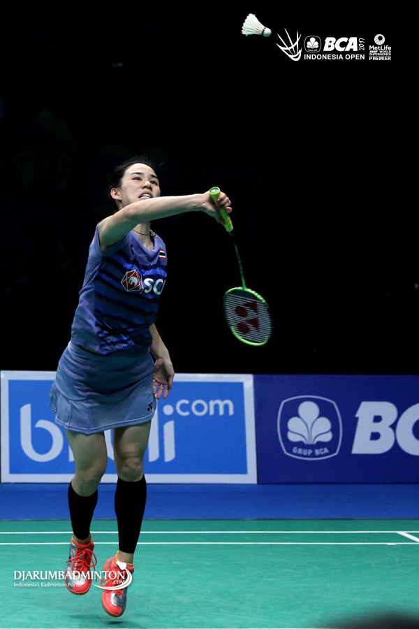 Nitchaon Jindapol (Thailand) bersiap menyambar pengembalian