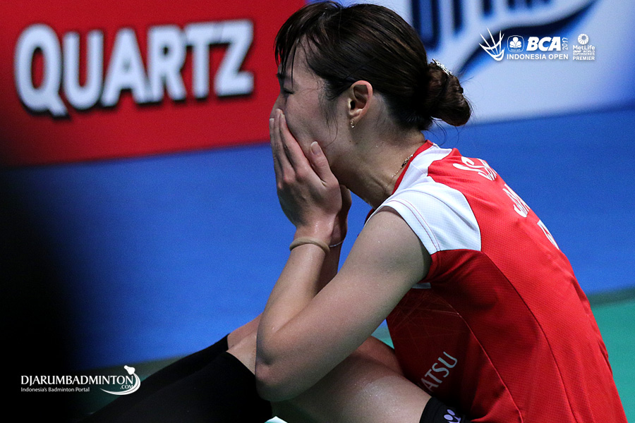 Ekspresi kemenangan Sayaka Sato (Jepang)
