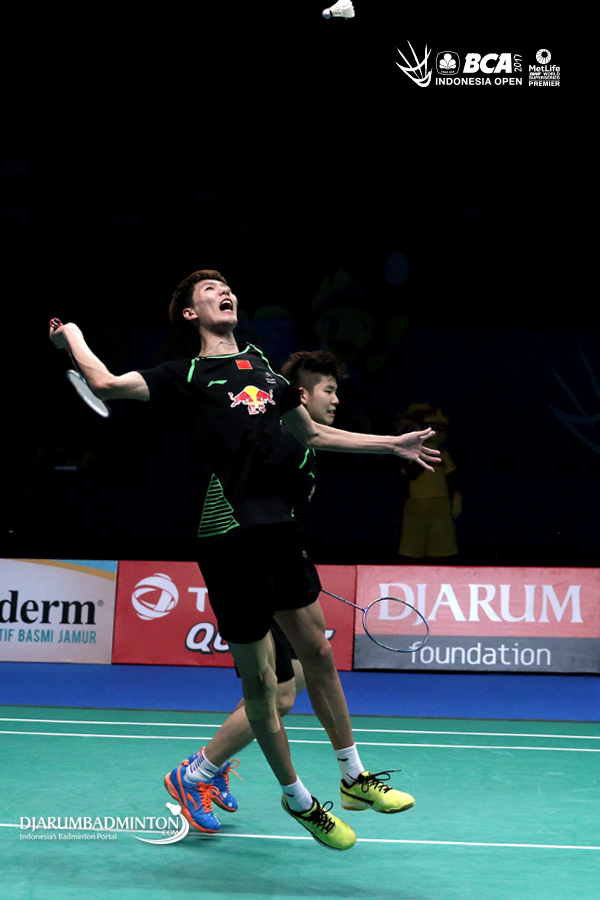 Li Junhui/Liu Yuchen (Tiongkok) menyambar pengembalian