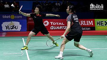 Zheng Siwei/Huang Yaqiong (CHN) bersiap menyambut pengembalian