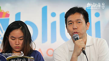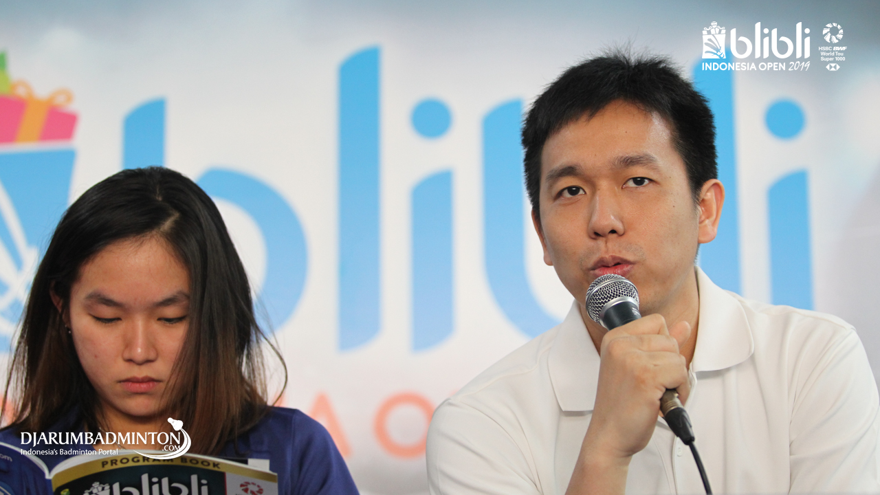 Ekpresi Hendra Setiawan saat Press Conference Blibli Indonesia 2019