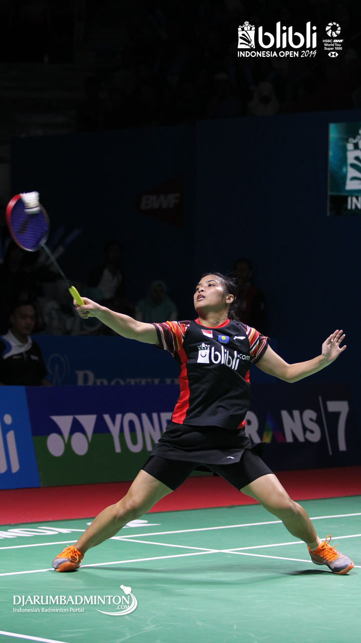 Gregoria Mariska TUNJUNG (Indonesia) mengembalikan shuttlecock
