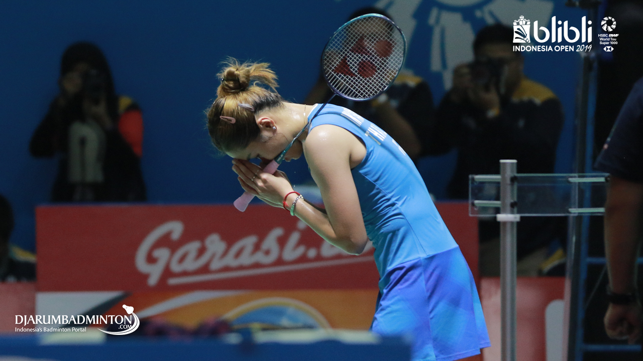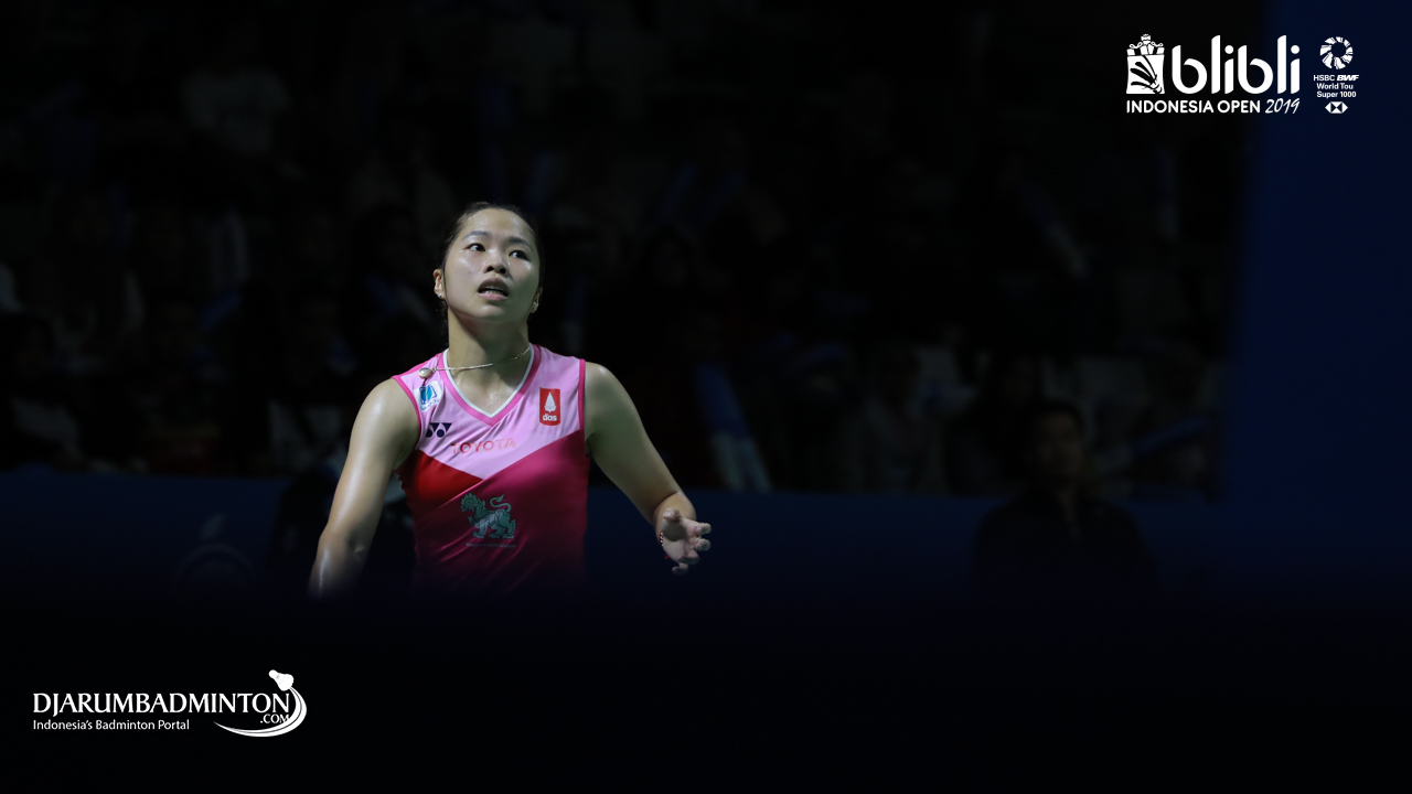 Ratchanok INTANON (Thailand) menggapai shuttlecock
