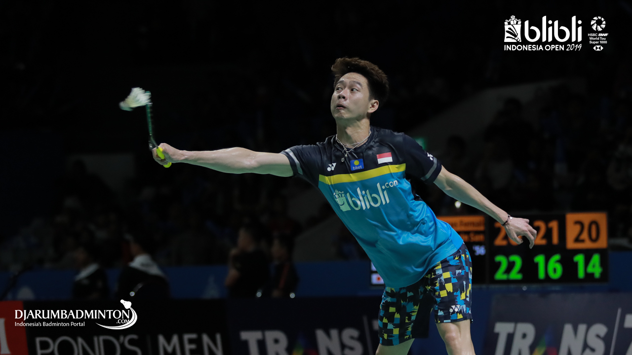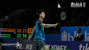 Kevin Sanjaya SUKAMULJO (Indonesia) mengembalikan serangan