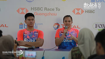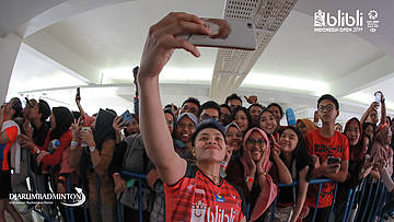 Suasana meet and greet Praveen JORDAN dan Melati Daeva OKTAVIANTI (Indonesia) di Blibli Indonesia Open 2019