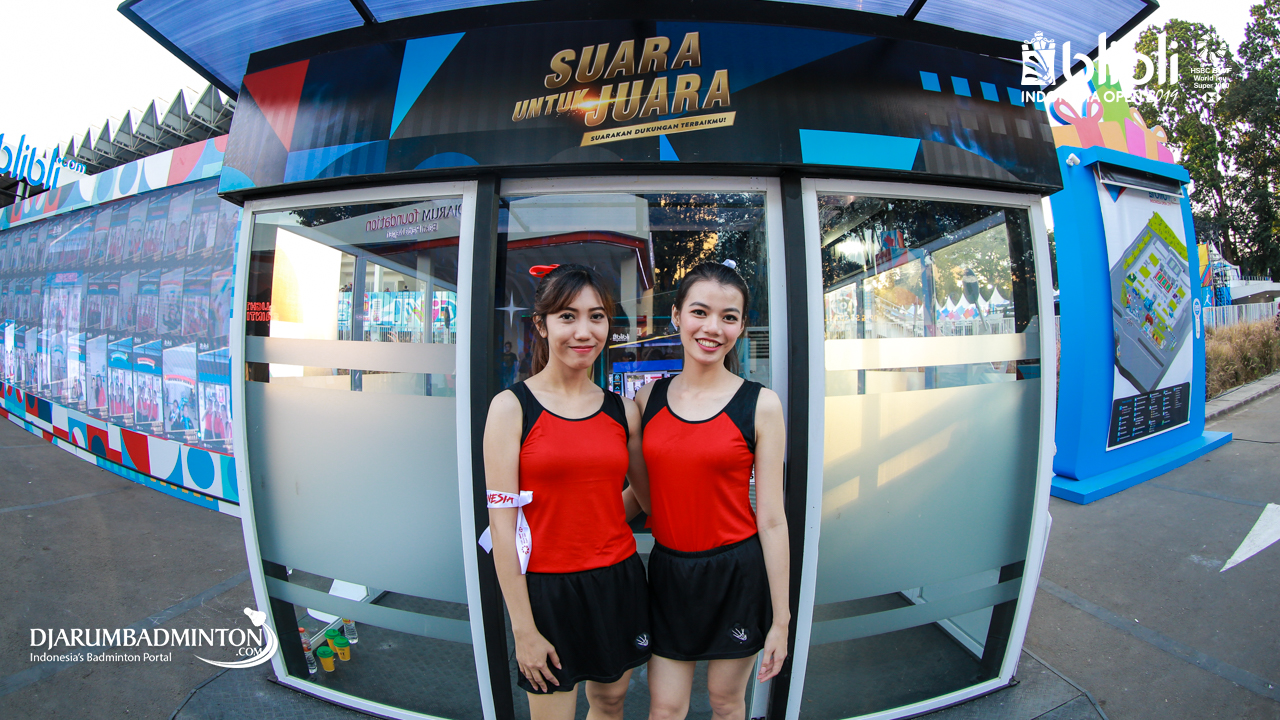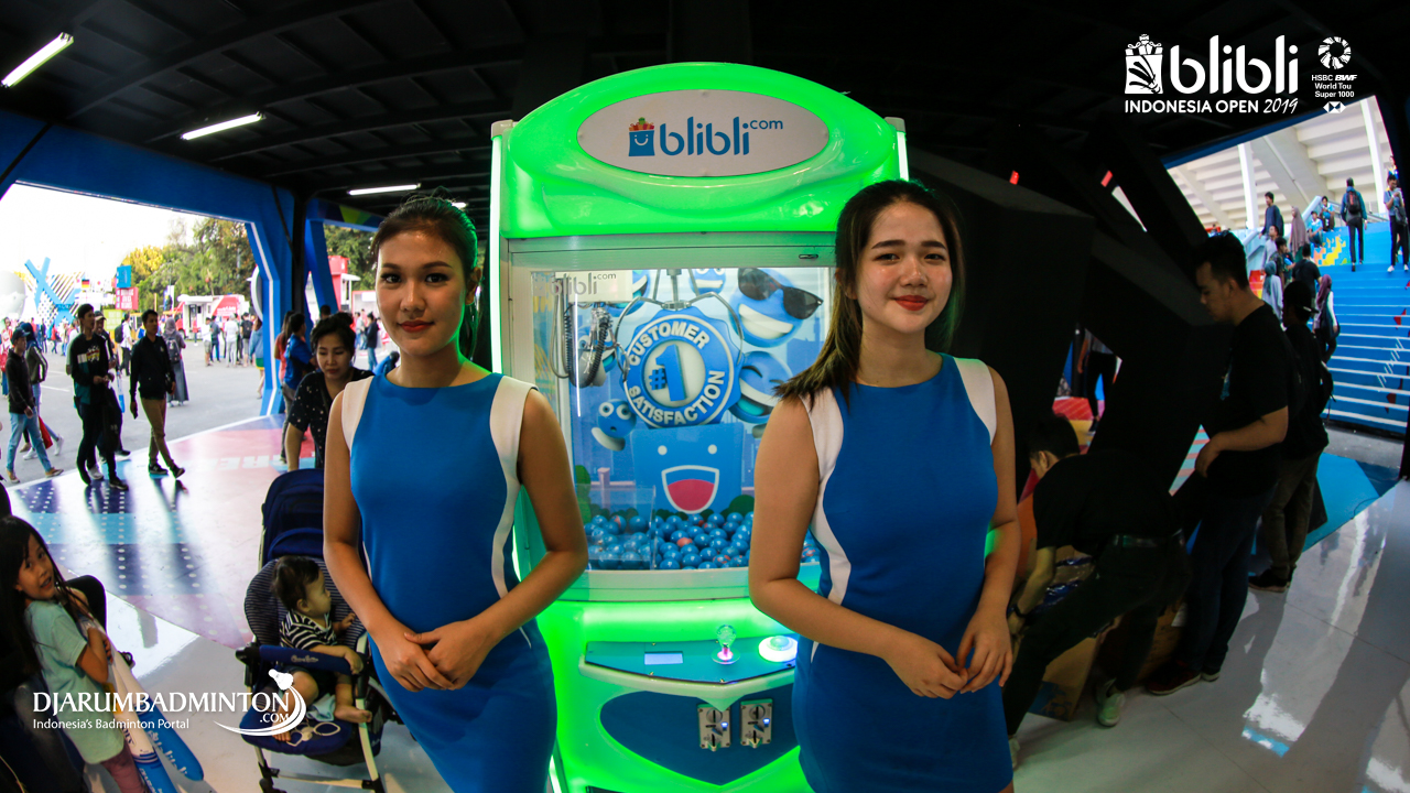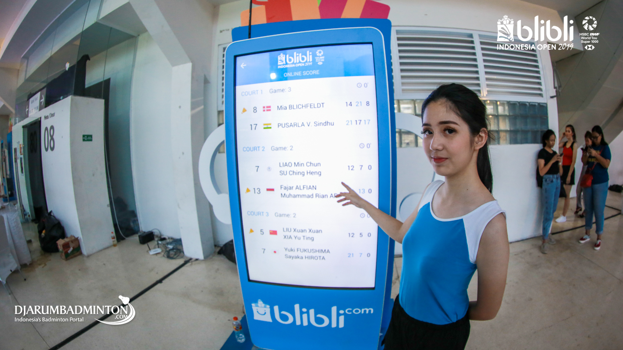 Salah satu Usher sedang menunjukan Touchsceen Information yang ada di Blibli Indonesia Open 2019