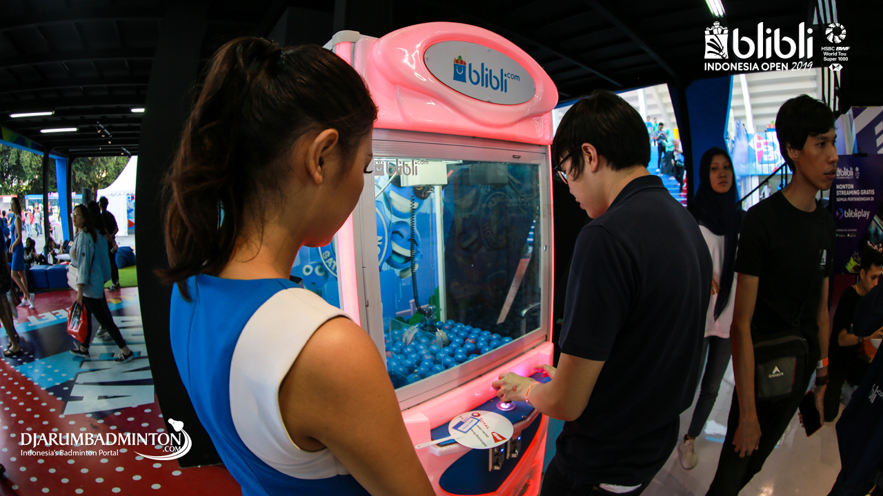 Salah satu pengunjung sedang mencoba salah satu game yang disediakan di booth Blibli.com