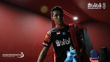 Jonatan Christie sebelum masuk ke arena pertandingan
