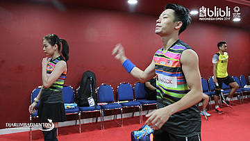 Goh Liu Ying dan Chan Peng Soon (MAS) sebelum masuk ke arena pertandingan