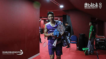 Chou Tien Chen sebelum masuk ke arena pertandingan