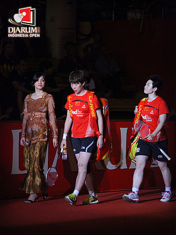 Xiaoli Wang/Yang Yu saat memasuki arena pertandingan