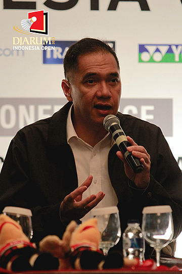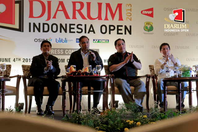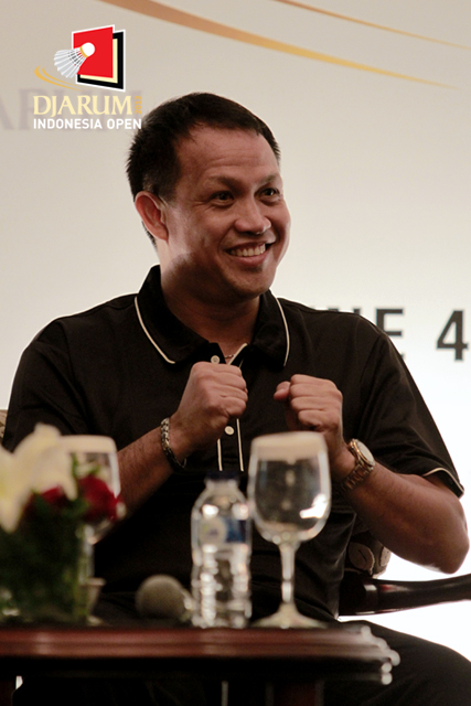 Rexy Mainaky saat menjadi narasumber pada saat press conference Djarum Indonesia Open Super Series Premier 2013