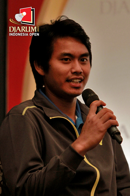 Tontowi Ahmad saat menjawab pertanyaan dari rekan media.
