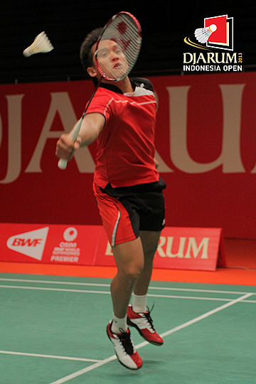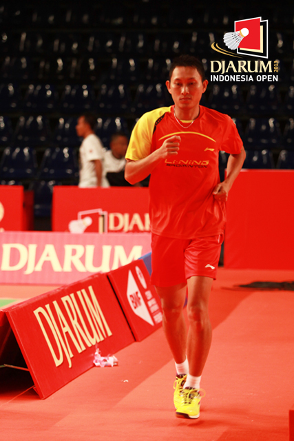 Sony Dwi Kuncoro (Indonesia) saat melakukan pemanasan di pinggir lapangan.