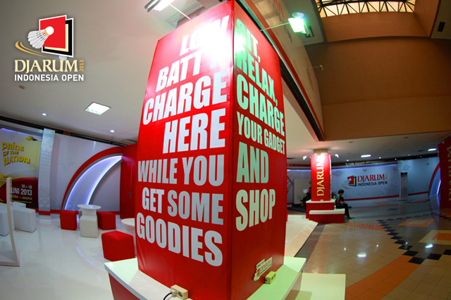 Booth Djarum menyediakan tempat bagi para pengunjung Djarum Indonesia Open Super Series Premier 2013 untuk mengisi ulang batre telepon genggam.
