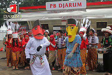 Salah satu peserta "Teriakkan Dukunganmu" berpose di depan booth PB Djarum.