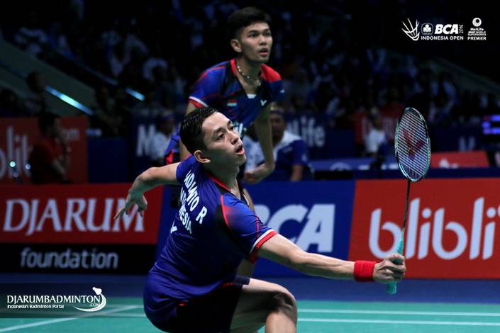 JAKARTA - Young Indonesian men's doubles pair, Fajar Alfian/Muhammad Rian Ardianto, failed to go to the BCA Indonesia Open Superseries Premier 2016 second round after on Wednesday afternoon were stunned by Denmark's pair, Mads Conrad Petersen/Mads Pieler Kolding. Fajar/Rian lost in deuce match,19-21, 21-14, and 25-27.